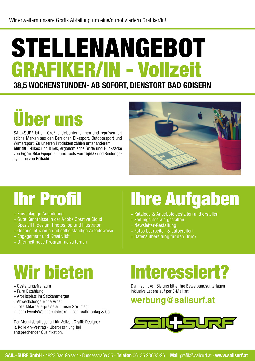 • Gute Kenntnisse in der Adobe Creative Suite – speziell InDesign, Photoshop und Illustrator